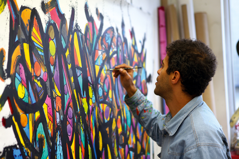 Artiste américain de renommée internationale, JonOne, de son vrai nom John Andrew Perello, d’origine dominicaine est né à New York, se décrit lui-même comme un « peintre graffiti expressionniste abstrait ». Autodidacte, il passe des supports urbains (murs, trains, sols, etc.) à la toile qu’il découvrira lors de son arrivée à Paris en 1987 et qui lui permettra de faire voyager et d’exposer ses œuvres aux quatre coins du globe. Chacune d’entre-elles reflètent sa joie de vivre et son inimitable jeu de couleurs, mélange subtil et harmonieux de teintes chatoyantes qui se veulent le reflet d’une véritable joie de vivre. Pour JonOne, la peinture et, par extension, la couleur, est une invitation permanente au voyage...