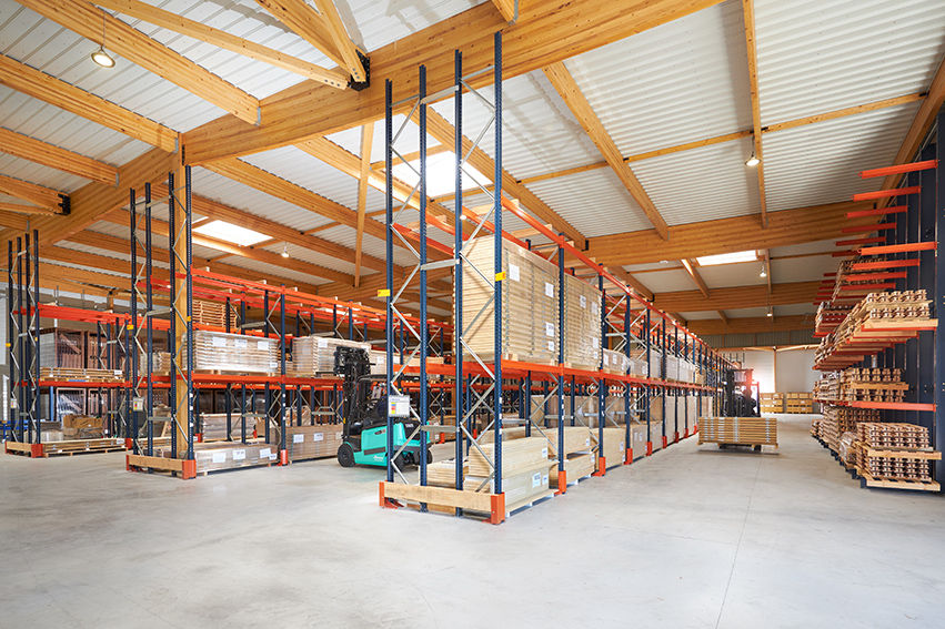 Ce nouveau bâtiment met à l’honneur une charpente bois avec des allées sans obstacle garantissant une optimisation des rayonnages et une sécurité logistique renforcée. Réalisée avec un bois provenant en partie des Landes, cette charpente affiche d’ailleurs des portées plus importantes que si elle avait été réalisée en poutres béton verticales, sans compter une résistance au feu également supérieure.