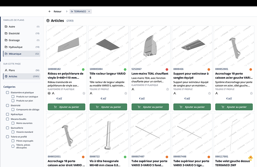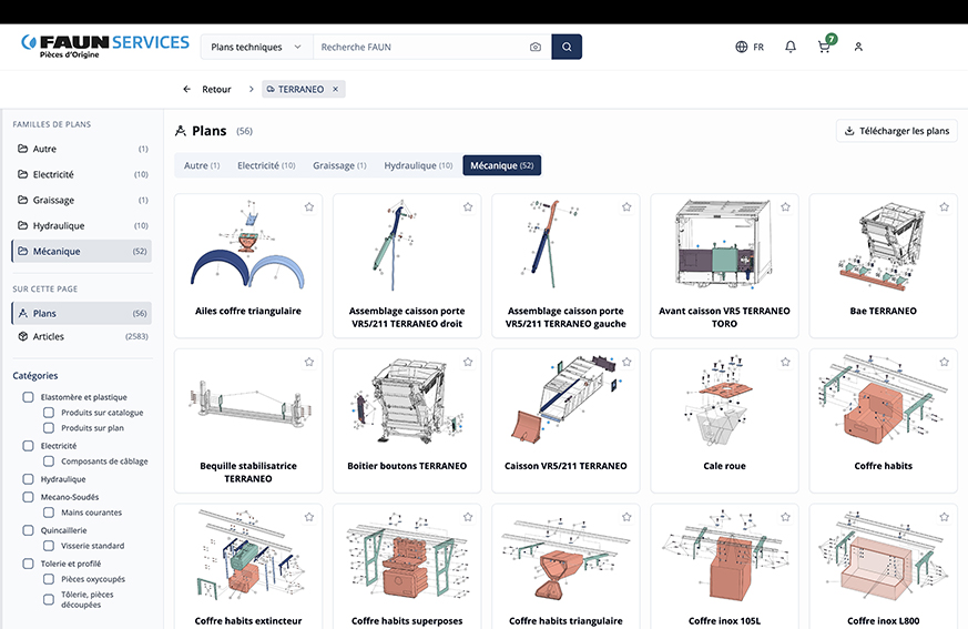 Au-delà de la recherche, FAUN Service Pièces d’Origine a été pensé pour simplifier le quotidien des professionnels chargés de l’entretien des matériels. Lorsqu’un client se connecte, l’interface est capable de reconnaître son parc d’équipements FAUN et de proposer directement une sélection de pièces compatibles avec les modèles qu’il exploite.