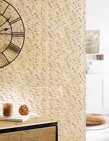 Proposé en ton pierre nuancé et gris métal, le parement Éclat (multiformat , ép. 0,5 à 2 cm) crée des ambiances graphiques résolument contemporaines grâce à un jeu d’emboîtements géométriques tout à fait ludique.