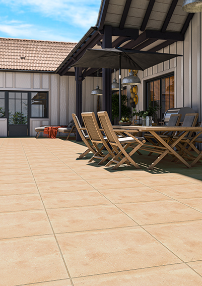 Affichant un aspect travertin authentique, la dalle en pierre reconstituée Coliséa (de dimensions 60 x 60 x 4 cm) est une nouvelle solution signée Alkern. Résistante au gel et antidérapante, son épaisseur autorise une mise en œuvre sur plots pour un chantier exécuté facilement et rapidement mais elle peut aussi s’effectuer en pose collée ou sur sable/gravillons. Précisons, de plus, que la dalle Coliséa, de couleur Miel clair, est carrossable pour les véhicules légers (charge < 0,9 tonne par roue) lorsque sa pose est réalisée sur sable ou gravillons. Prix public indicatif de 51,19 euros HT le m2.