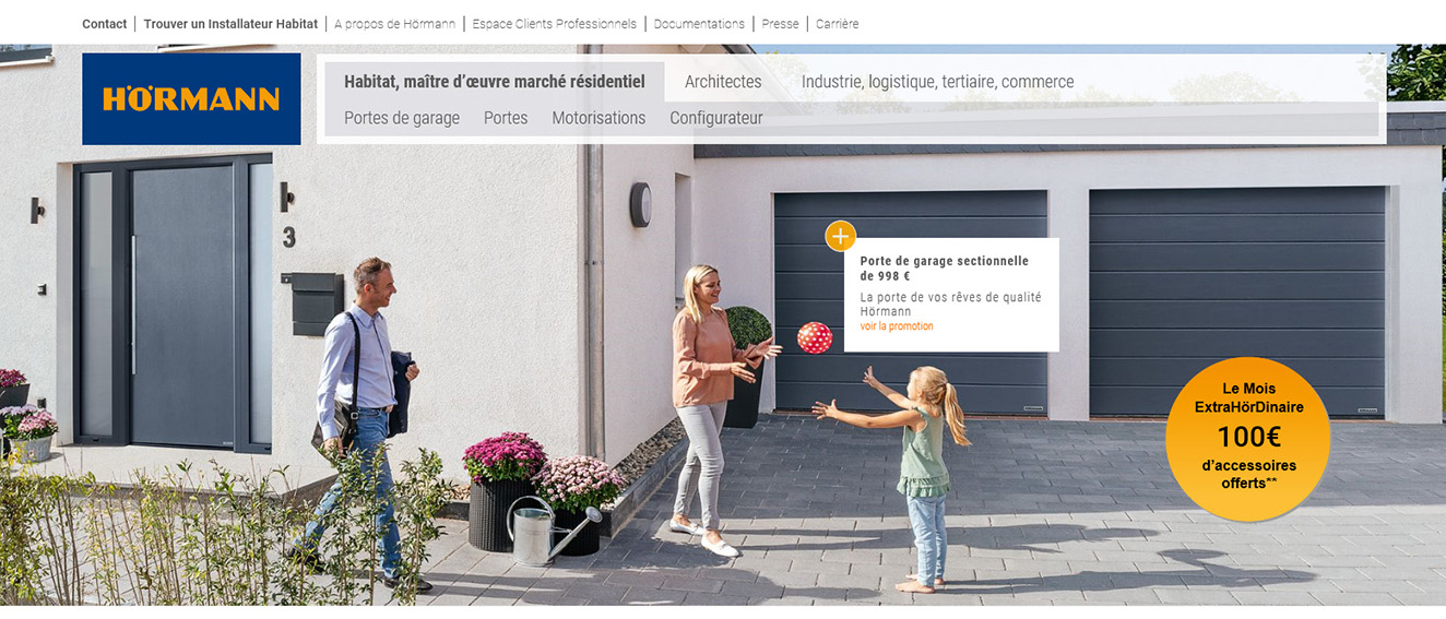 Marque haut de gamme qui décline également depuis quelques années des réponses à prix particulièrement attractifs, comme par exemple l’offre de portes de garage sectionnelles et motorisées RenoMatic, Hörmann place l’innovation au coeur des tendances digitales en dévoilant au marché français ses solutions en ligne, conjuguées à une nouvelle offre RenoMatic étendue.