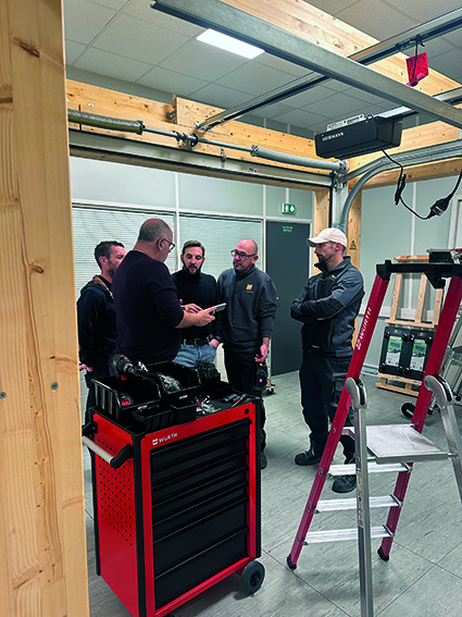 Pour une formation optimale, Hörmann a fait le choix de conjuguer session théorique le matin et atelier pratique l’après-midi. Soulignons que la partie "pratique" se tient dans un espace dévolu de 103 m2, afin de proposer des modules qualifiants concrets sur des produits en conditions réelles tels que : porte de garage sectionnelle ferrure Z, porte de garage sectionnelle à portillon ferrure N, porte de garage latérale, porte de garage enroulable, portail coulissant, portail battant, mais aussi motorisations (ProMatic, SupraMatic, LinéaMatic, VersaMatic, Rotamatic) ou encore accessoires (télécommandes, digicodes, feux clignotants). Notons également qu’Hörmann met à disposition une salle de détente pour les pauses qui permet de prolonger les échanges conviviaux.