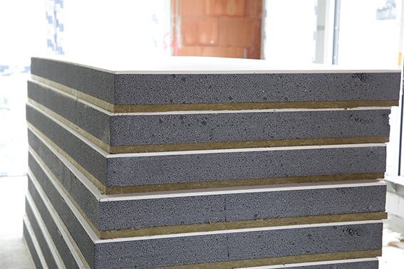Complexe de doublage composite hautes performances d’une largeur de 1,2 m, Polyplac Brick est constitué de 30 mm de laine de roche, de polystyrène expansé graphité Knauf XTherm ULTRA 32 Mur (avec épaisseur variable selon la résistance recherchée) et d’une plaque de plâtre Knauf BA 13, standard ou hydro.