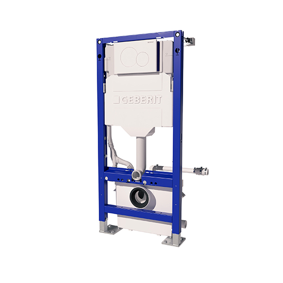 Ce nouveau bâti-support est équipé de la plaque de commande blanche Sigma 01 ronde et de points de fixations murales alternatifs (si obstacles). Geberit indique aussi une réduction de CO2 lors de sa fabrication plus éco-responsable et exploitant plus d’électricité verte.