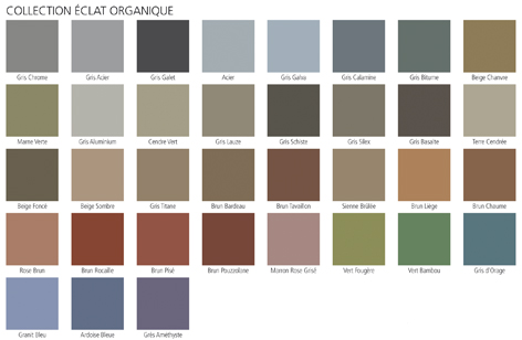 Parmi ces 252 teintes, 35 teintes soutenues ou foncées présentent un coefficient alpha > 0.7 et, de ce fait seront également proposées avec la technologie Ultime Color : une gamme en adéquation parfaite avec les nouvelles exigences et tendances esthétiques actuelles, et qui répond aux exigences réglementaires (DTU 59.1 et CPT 3035).